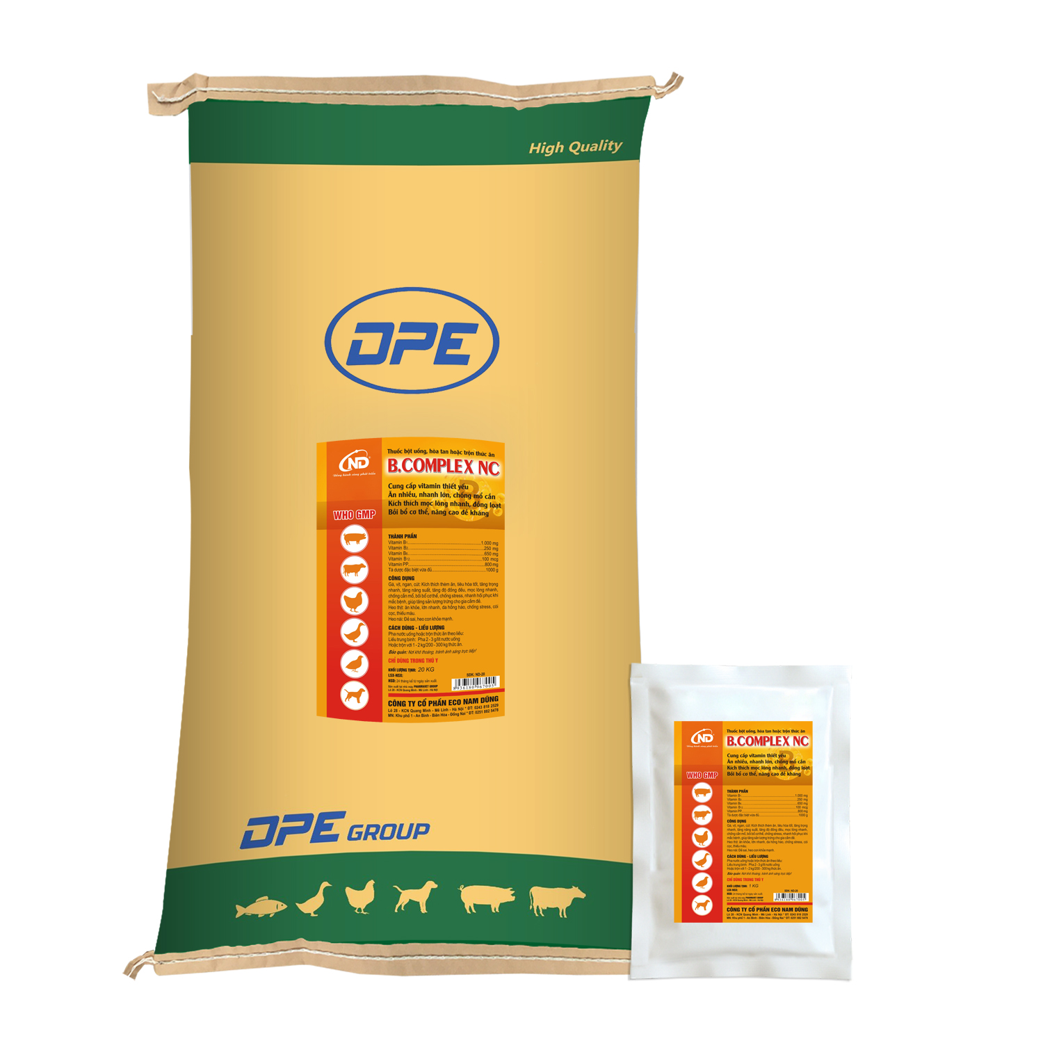 Hoặc trộn với 1 – 2 kg/200 – 300 kg thức ăn.